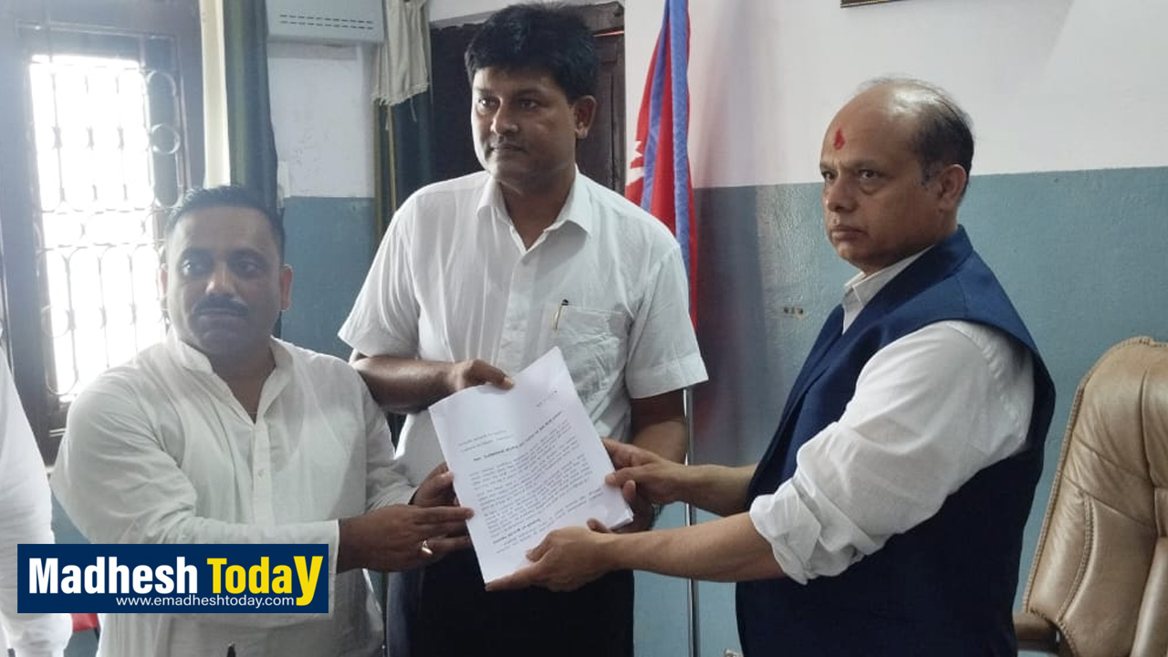 समन्वय एवं सहजकर्ता धनुषा क्षेत्र नं. ३ (क) का प्रत्याशी जीतेन्द्र कुमार यादव एवं नेपाली काँग्रेसका युवा नेता प्रवेश चौधरीको संयुक्त अगुवाईमा ज्ञापन पत्र बुझाइएको छ ।
