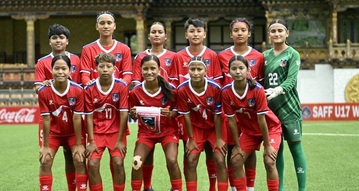 काठमाडौं, भदौ ६ । नेपाल महिला फुटबल टोलीले आज भुटानसँग प्रतिस्पर्धा गर्दैछ । साफ यू–१७ महिला च्याम्पियनसिपको जारी खेलमा नेपालले आयोजक भुटानको सामना गर्न लागेको हो ।