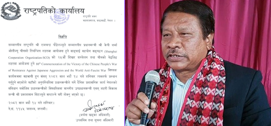 काठमाडौं,भादौ १४ । कार्यवाहक प्रधानमन्त्रीको जिम्मेवारी उपप्रधानमन्त्री एवम् शहरी विकासमन्त्री प्रकाशमान सिंहलाई दिइएको छ ।